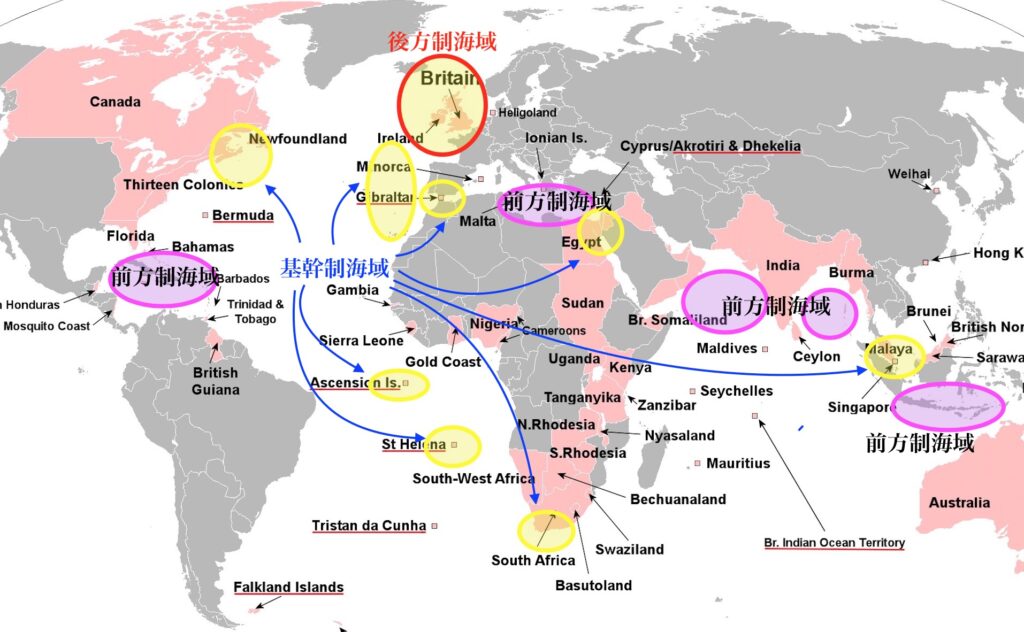 これまではグレートブリテン島にスペインやオランダの侵攻軍を寄せ付けないことがロイヤルネービー(イギリス海軍)の最大の責務であり、そのために経験的に生み出されたのが伝統的な制海三域であった。しかし、海上交易市場の拡大に伴いロイヤルネービーはその作戦範囲を拡大させていった。